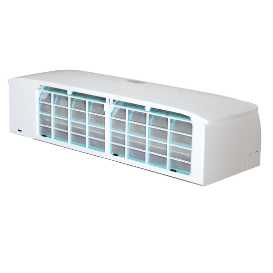 Sistema de ecofiltro triple que elimina bacterias, captura polvo y evita la formación de hongos y microbios.