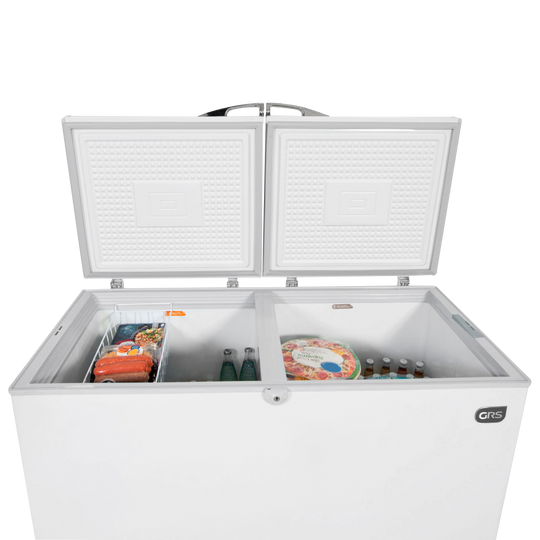 ¿Tienes productos que requieren refrigeración y otros que necesitan estar congelados? ¡GRS piensa en ti con su congelador doble función GF 330SS de 13 pies³! Este modelo cuenta con dos compartimientos independientes, cada uno con su propia puerta, ideales para organizar tus productos refrigerados y congelados sin mezclarlos.