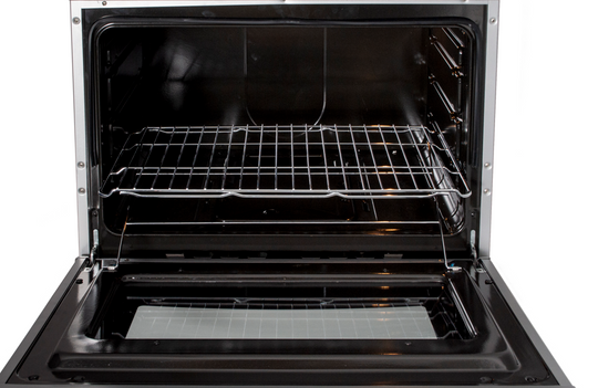 Puerta de horno con doble vidrio templado para mejor aislamiento térmico.