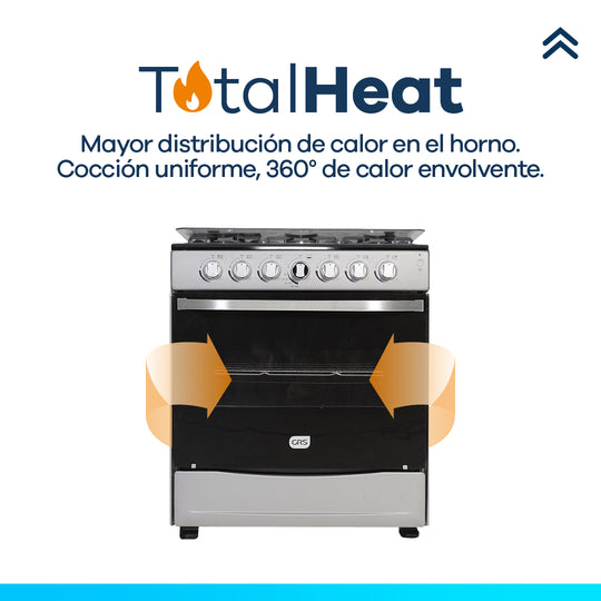 Horno con tecnología Total Heat: cocción envolvente 360° para resultados más uniformes.