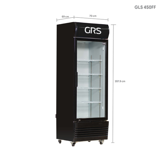 La GLS 450FF de 16 pies³ es ideal para negocios que requieren conservar y exhibir una mayor cantidad de productos sin comprometer el diseño, el orden ni el consumo energético.